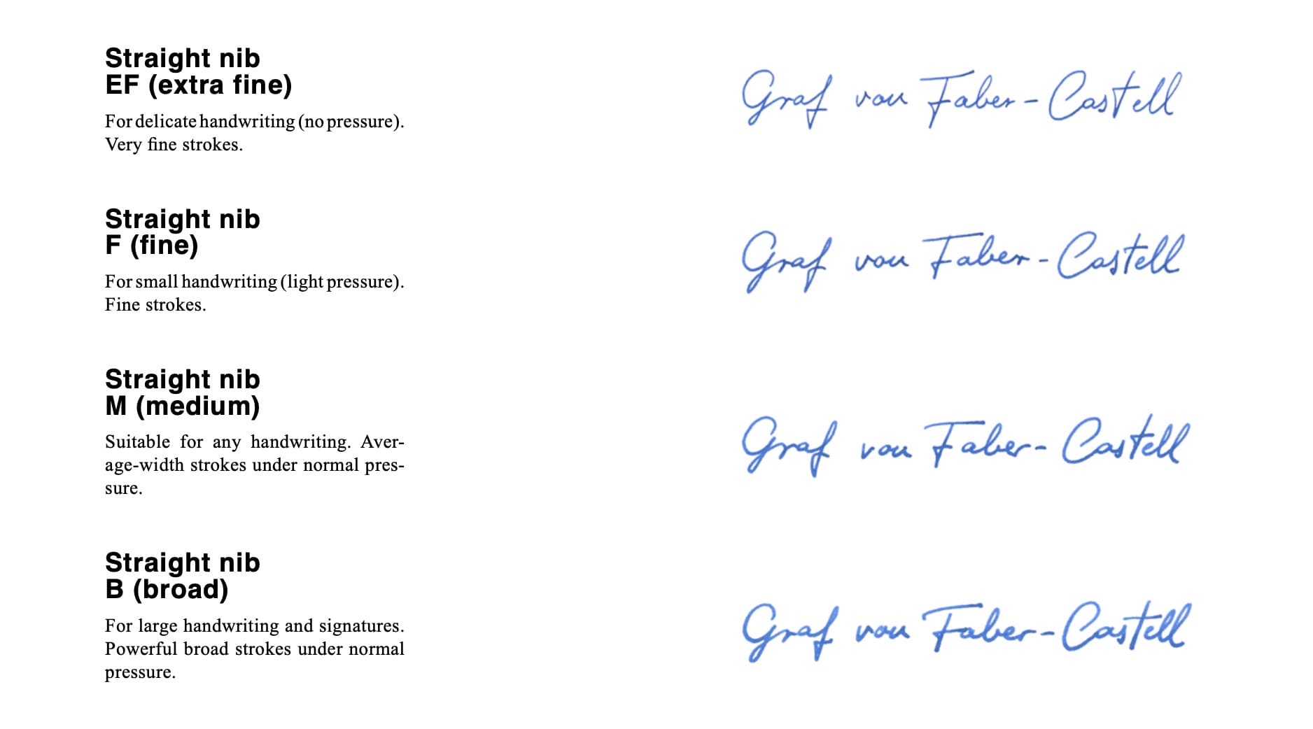 - encres compatibles : en flacon, cartouche Graf von Faber-Castell, cartouche courte et longue de format international standard