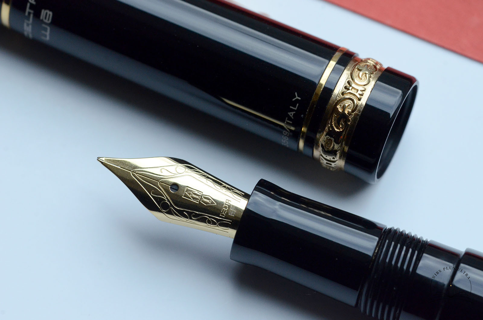 Delta a doté son Wè 17 d’une plume acier inoxydable plaqué or affichant une magnifique gravure et réalisée par le fabricant Jowo (n° 5). Elle vous la propose en tailles EF, F, M, B.